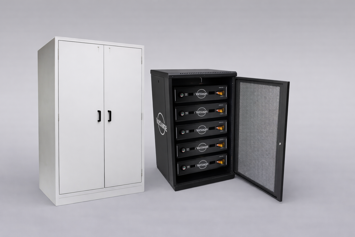 Um dir eine perfekt abgestimmte Lösung zu bieten, setzen wir auf die bewährten Batterieschränke von Voltsmile. Diese sind exakt auf die Maße und Anforderungen der gängigen 19-Zoll-Speichermodule wie Voltsmile V5 und V10 zugeschnitten.